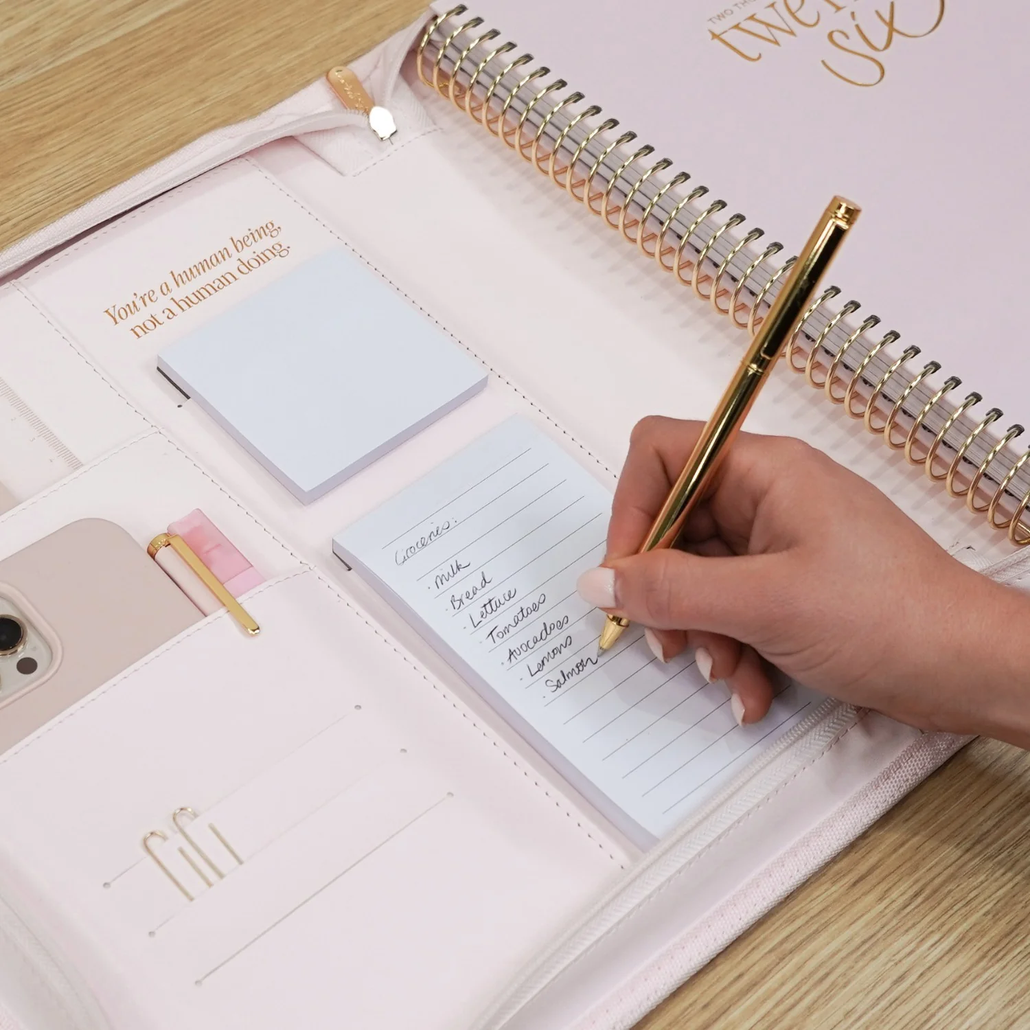 - Two mini notepads included, designed to fit neatly into the Large size Luxe Zip-up Planner Folio!