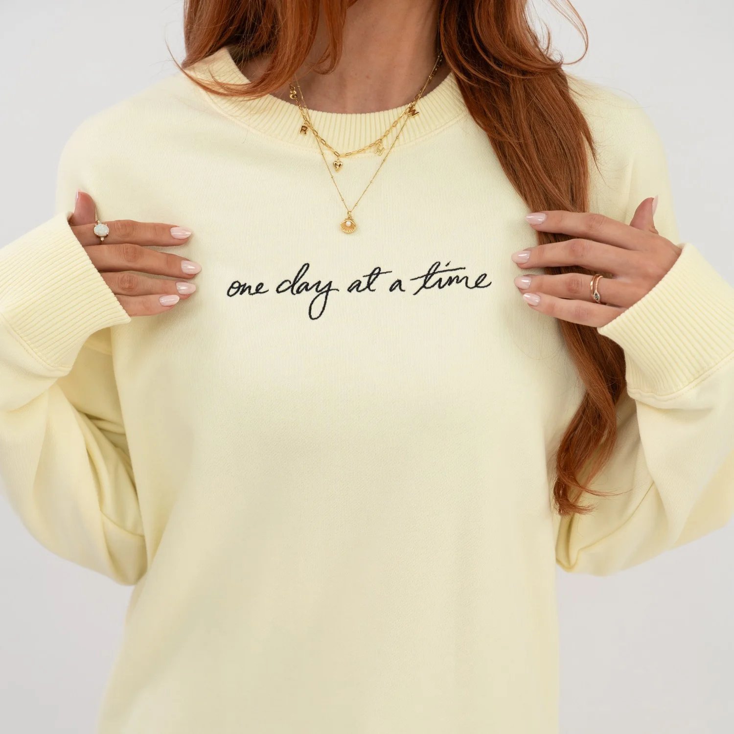 'One day at a time' Crew Neck Jumper - Butter Yellow