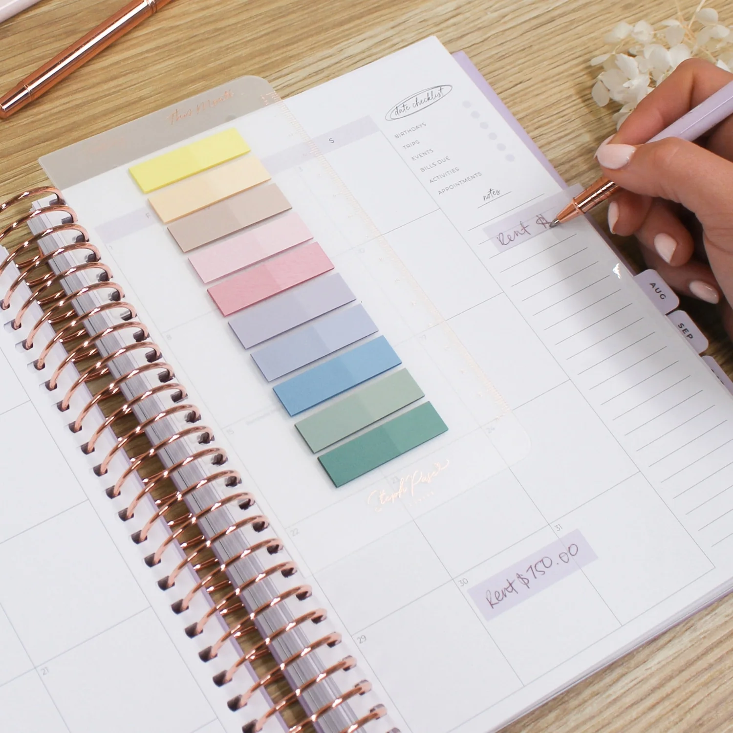 Our versatile 'This Month' bookmark is designed to click into the spiral of Steph Pase planners and notebooks, to mark the current month. And the best part? You'll always have a set of pretty pastel sticky-note flags right where you need it, ready to bring your plans to life.