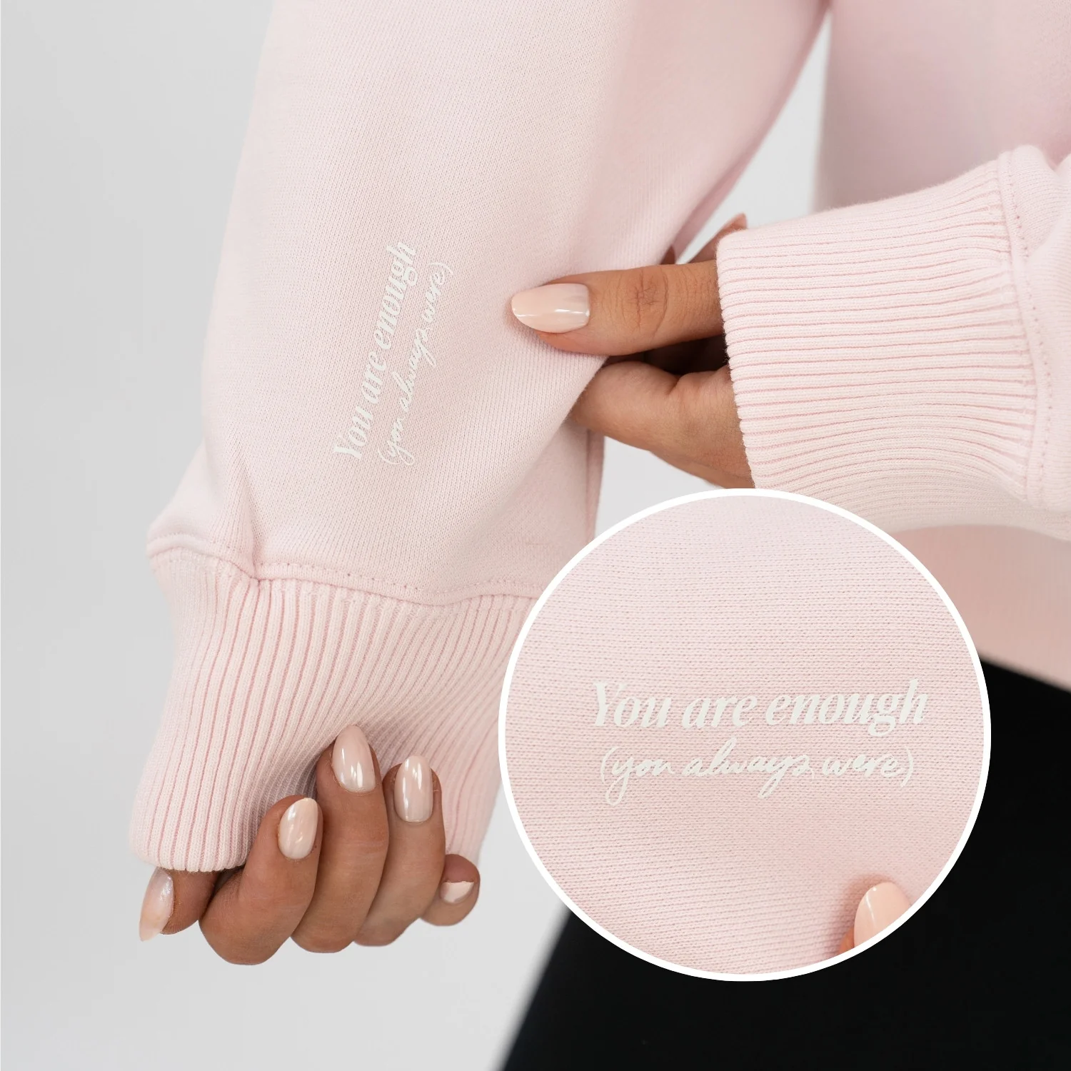 - Special inspirational message printed on the inner right sleeve: 'You are enough, (you always were)'.