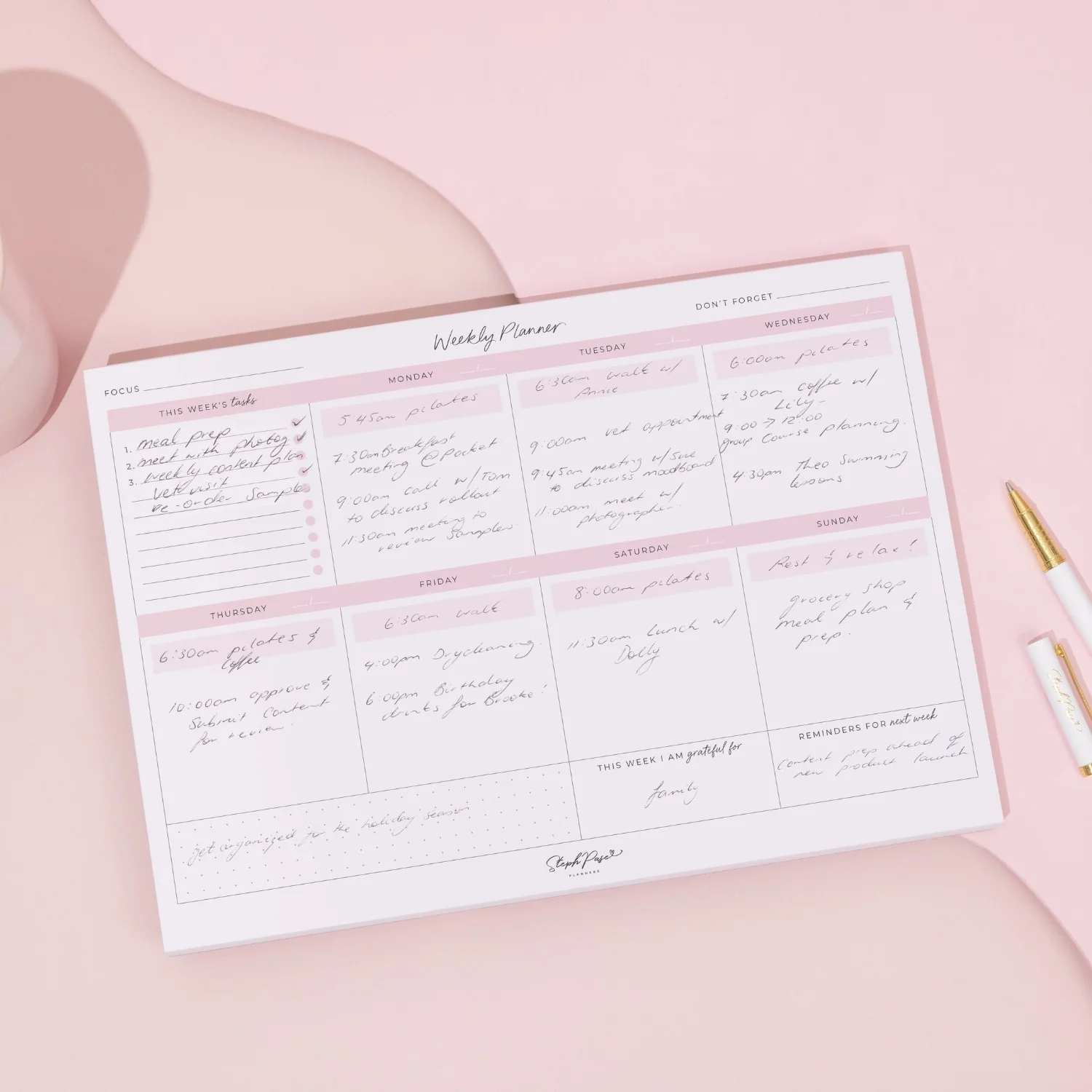 Map out your week and set your priorities with a versatile Weekly Desktop Planner Notepad. The easy-to-use layout gives you the flexibility to plan your home, work, study or personal tasks. With 52 undated sheets, this is the perfect tool for boosting productivity and feeling in control all year round!