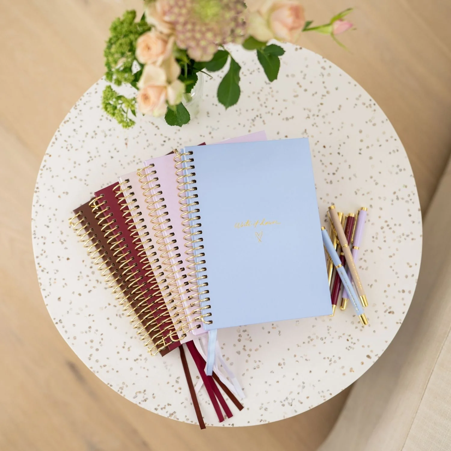 Introducing... the restocked and revamped signature 'Write it Down' A5 Notebook! The perfect little notebook for all your notes, ideas, to-do lists, dreams, journalling, inspiration and so much more! Featuring a luxe gold spiral and gold calligraphy 'Write it out' message on the cover, this spiral notebook is a beautiful addition to your stationery line up.