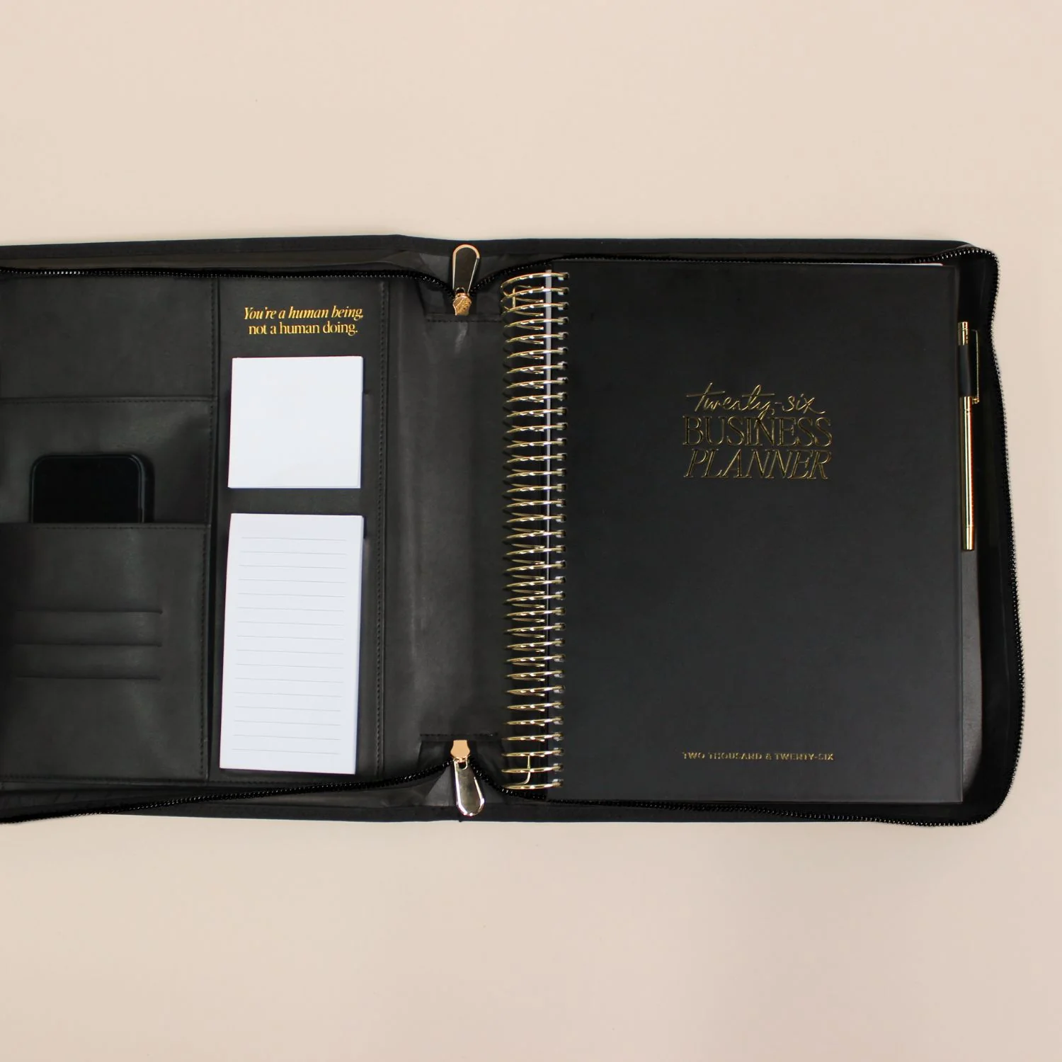 Luxe Zip-up Planner Folio - Black - Large