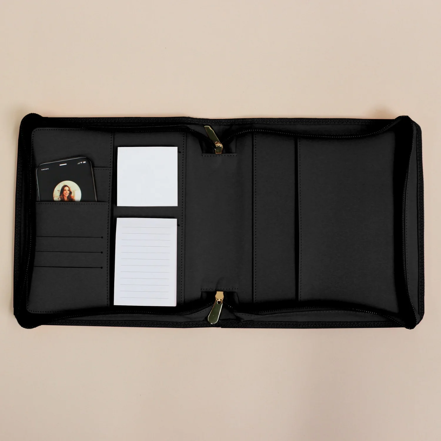 This is the ultimate planner cover, loaded with storage pockets, pen loop, and two free mini notepads. Don't leave home without it!